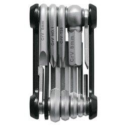 The XLC M05 is one of the most complete 19 function bike folding tool, with the most used bike sizes tools (allen, torx, screwdrivers, wrenchs) and a chain tool. Ideal to solve any problem you have on route.