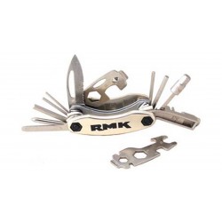 The RMK bike multi-tool is a solid solution to all your trail repair needs. Allen keys, fixed wrenchs, screwdrivers and tyre lever. Tools and borders in steel.