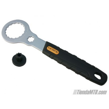Tool for tighten or loosen the Shimano Hollowtech bottom brackets. With this tool you can make the maintenance of the bottom bracket, because includes the accesory for tighten the left crank cap.
