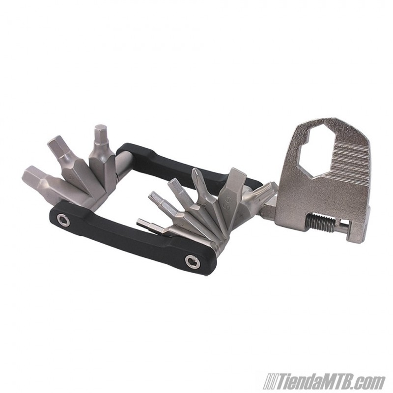 This TekMax multitool has almost everything you need to solve any breakdown you have on your bike on route. Made of CR-V hardened steel. This bicycle multitool has a compact size (56x44x11mm) and very low weight, only 90gr.