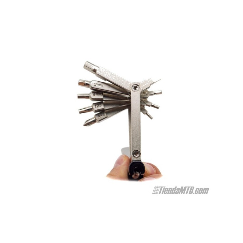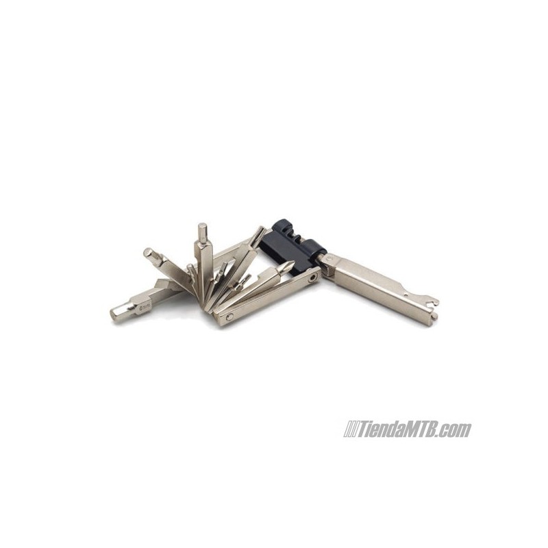 This TekMax multitool has almost everything you need to solve any breakdown you have on your bike on route. Made of hardened steel. This bicycle multitool has a compact size (55x42x9mm) and low weight, only 150gr.