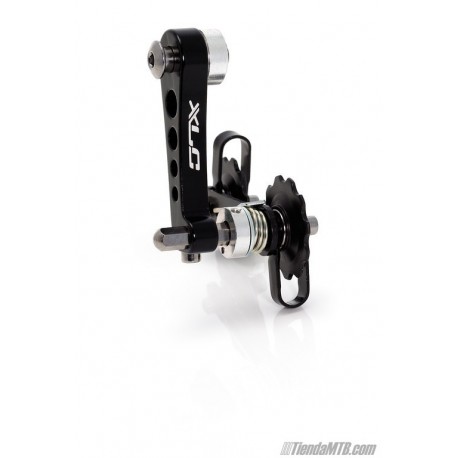 Chain tensioner for single-speed bike. Must be mounted in the rear derailleur hanger. Configurable spring tension. It allows adjustment of position to keep the chain line. Manufactured in aluminium.