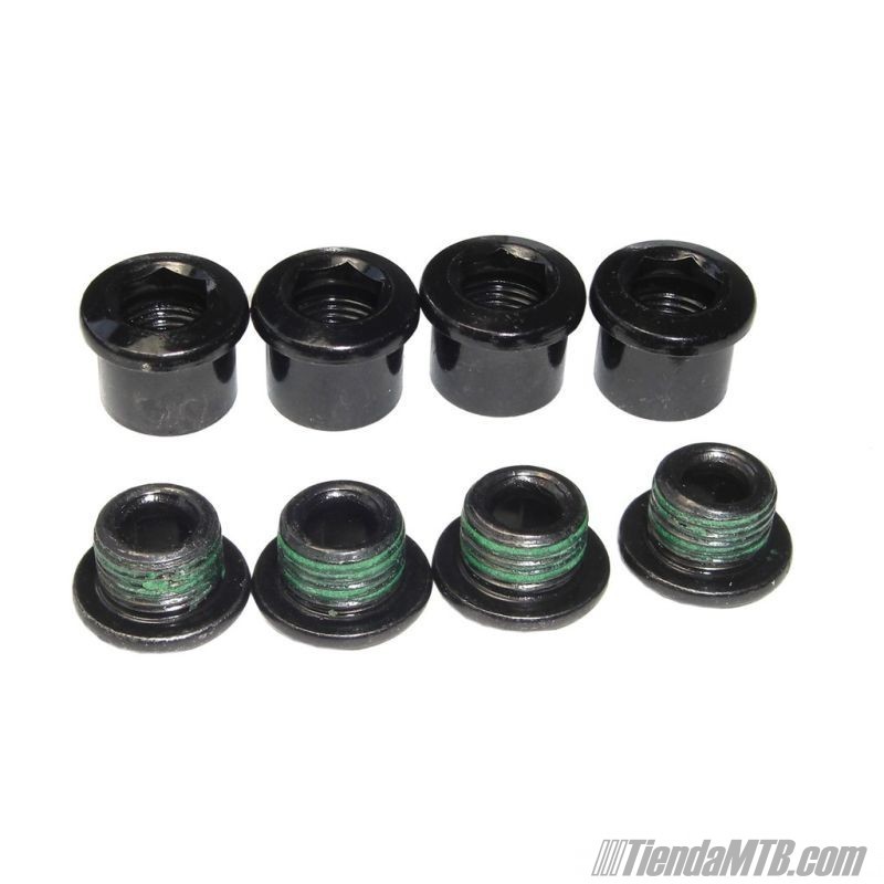 4 SRAM / Truvativ chainrings bolts set, in black color, made of steel and 7mm length.