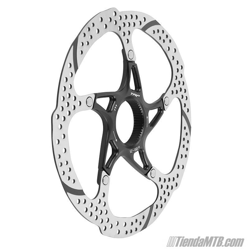 TRP disc brake for mountain bikes with disc brakes. Centerlock attachment system. Built with lot of holes and aluminium spider for better heat dissipation. Diameter of 180mm.