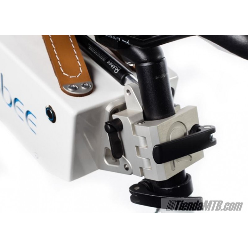 Hold the Rubee to the seat post with the quick release and lay it on the rear wheel. Its engine of 250W power turns the small wheel which spins the wheel of the bicycle. The strong support and intelligent motor control prevents slipping and thus no wear occurs on the roller or the bicycle tire. The unit shock absorver allows you to use it in full suspension bikes without any problem, allowing free movement of the suspension without losing the driving force of the engine. You can uphill easily and effortlessly.