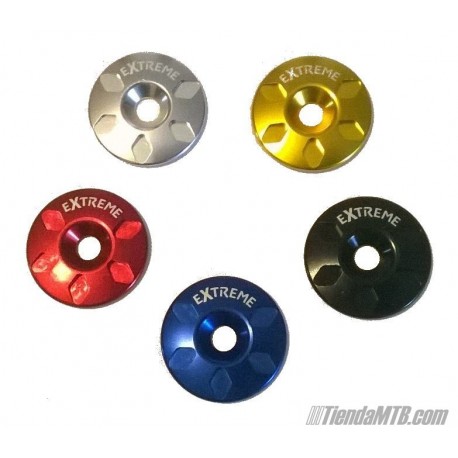 Aluminium ahead cap anodized in different colors: red, silver, gold, black, blue. Included screw in the same color. Spider included. Price per unit.