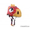 Partly inmould bicycle helmet with rubber finish and colored straps and paddings. Red LED integrated in the helmet adjustment ring for better safety and the adjustment buckles are easy and comfortable to use. A chin attachment (jaw) is included to give the helmet the "Crazy" finish.