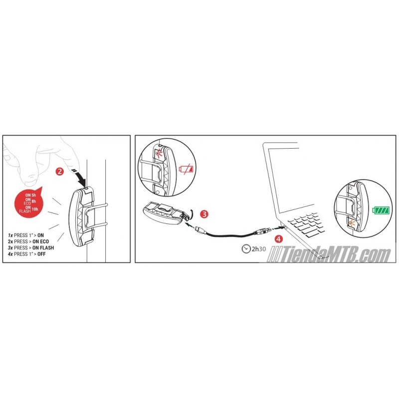The Spanninga Arco is a powerful red rear light visible to more than 600m with rechargeable battery by USB. Use a bright COB LED that gives more than 30 lumens. Installation to the bicycle without tools with some rubber bands included. Duration on 10 hours. Aerodinamic design ideal for road bikes. More than 180º view angle.