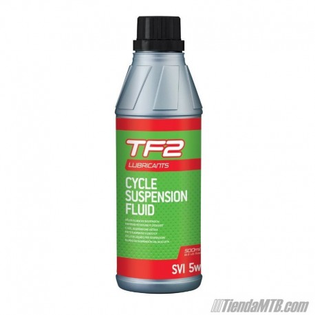 Weldtite TF2 oil specially formulated for bike suspension forks and shocks, with additives against foam and for consistent performance al all themperatures. Density: 5W or 15W. 500ml.