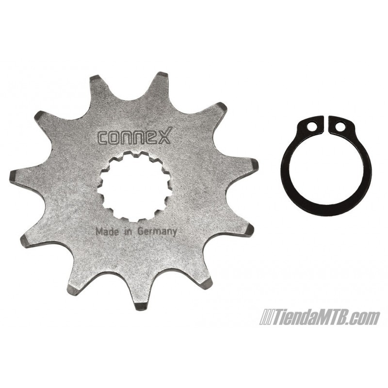 Sprocket replacement to replace inner pinion in Panasonic Electric Motors of electric bicycles. Manufactured by Connex in steel reinforced for added durability. Available in several sizes for higher power (9 teeth) or higher speed (11 teeth).