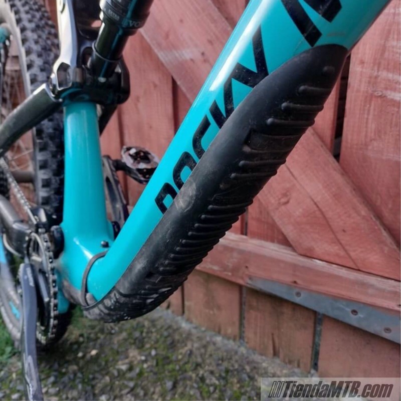 The internal aluminum sheet allows it to adapt to any frame while maintaining the proper shape, even those with curved tubes. The rubber from which it is made adapts perfectly to the curves that we make without showing strange folds or wrinkles. In addition, the edges are designed upwards so that they seal with the frame, making it look like the protector comes from the factory.