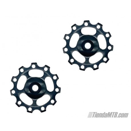 11 Teeth jockey wheels for all Shimano 9, 10 and 11s groups. Sealed bearings for better shifting precission. 2 jockey wheels included.