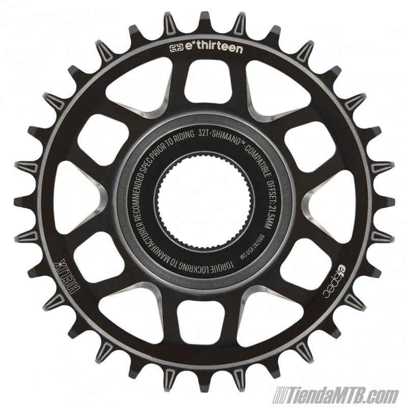 e*Thirteen direct mount chainring for Shimano EP8 / E8000 / E7000 ebike motors. The eThirteen Helix Core is made of steel for long lasting and is available in 32T. Narrow-Wide teeth system to avoid chain drop out.