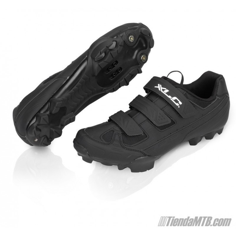 The XLC MTB shoes CB-M06 Black provide the optimal price-performance ratio with the upper material combination of leather, PVC and breathable supportive mesh inserts and the extra-stiff nylon sole. For a comfortable fit use 3 Velcro fasteners. In addition, the generous profiling, including the screw-PU cleats guarantees a secure footing in running sections. Black color.