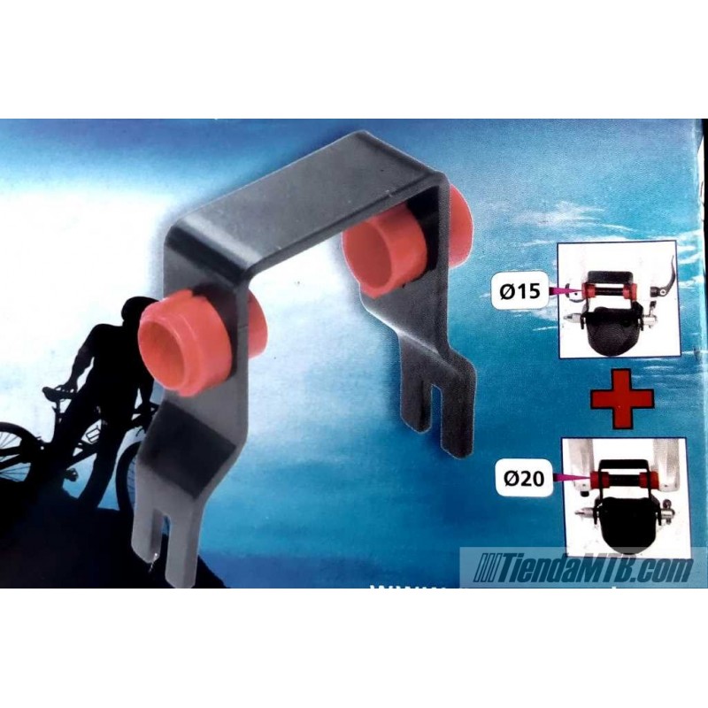 Adapter for 15mm and 20mm front thru axle for bike racks where the fork will anchor (type Pordoi Delux Duna, Elite, Thule Sprint,...). With this adapter you can continue using your old carrier's for quick-release axles of 9 and 10 mm with bicycles with new forks with 12mm, 15 mm or 20 mm thru axles, an now for Boost forks too.