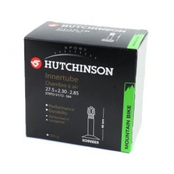 Camara Hutchinson para ruedas de 27.5 pulgadas de gran balón, ideales para descenso (DH) al dar mayor protección, o para bicicletas con neumáticos de 27.5+ Plus. Estas cámaras están diseñadas para dar un balón de 27.5x2.30-2.85 pero pueden llegar sin problema a 27.5x3.00. Válvula gorda (moto).