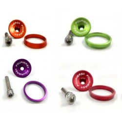 Tapa de dirección ahead 1 1/8" de aluminio anodizado en diversos colores: rojo, plata, oro, negro, azul. Tornillo también en aluminio del mismo color. Incluye araña. Muy ligera. Precio por unidad.
