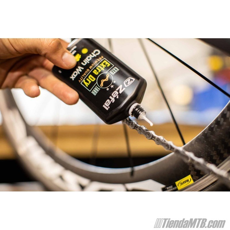 - Dificultad de aplicación: Los lubricantes de cera pueden ser más difíciles de aplicar que los lubricantes a base de aceite. Esto se debe a que, principalmente en climas muy fríos, la cera es más espesa y se seca más rápidamente, impidiendo que se filtre en profundidad en la cadena.