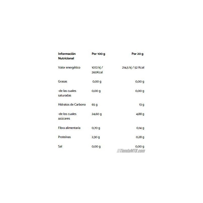 | Valor energético | 1072 kj / 260Kcal | 214,5 kj / 52 Kcal |