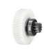 Engranaje de plástico blanco para ebikes con motores Bafang M300. Incluye tanto la rueda dentada helicoidal de nylon blanco como el eje central de acero y rodamientos (tal como se ve en la foto), todo listo para ser montado directamente.