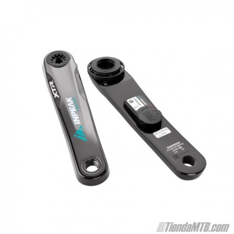 Biela izquierda Shimano con medidor de potencia INPEAK integrado. El potenciometro integrado en la biela transmite inalambricamente tanto la potencia de pedaleo como la cadencia. Es compatible con cualquier ciclocomputador o GPS con ANT+ o Bluetooth LE (Garmin, Sigma,....). Solo añade 12gr al peso original de la biela. Disponible para bielas XTR M9100, XT M8100, XT M8000, SLX M7100,...
