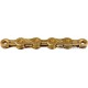La cadena de 11 velocidades KMC X-11-EL-Oro es lo máximo en calidad. Con eslabones aligerados es muy ligera (247gr) pero muy duradera gracias a la fabricación "Double X Durability". El baño Ti-N a toda la cadena le da una resistencia extrema a la corrosión y ese color dorado. Válida tanto para SRAM como para Shimano.