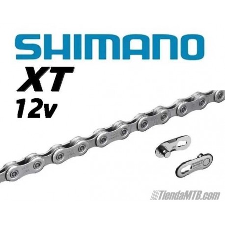 La cadena Shimano XT 12v CN-M8100 corresponde al grupo Deore XT. Cadena realizada con eslabones de acero inoxidable de gran calidad para soportar fuerzas de corredores de competición y ebikes sin estirarse y aguantar la corrosión durante más tiempo.