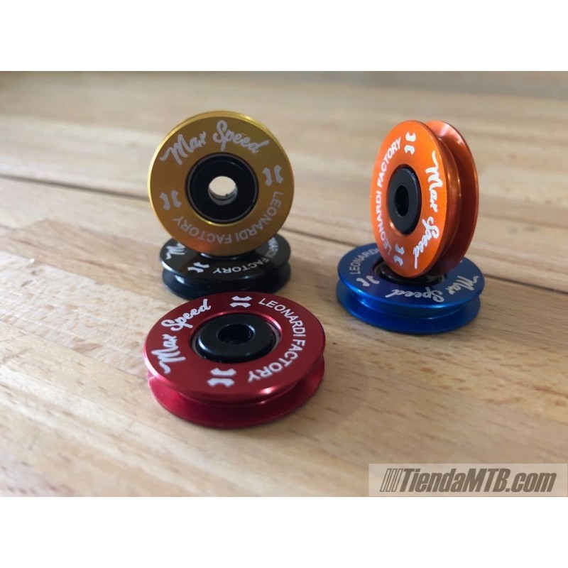 La Leonardi Max Speed es una polea de colores con rodamientos para cambios SRAM XX1 y XO1 de 11 y 12 velocidades. Compatible con GX con un kit adicional (no incluido). Gracias a los rodamientos el cambio funciona más suave y preciso. Fabricada en aluminio anodizado de color amarillo, naranja, azul, rojo, verde, fucsia, plata, titanio, dorado y negro.