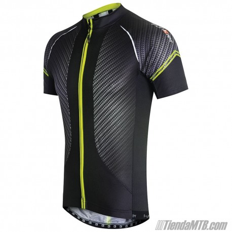 Maillot de manga corta y cremallera completa hasta abajo. El maillot Funkier Tivoli Pro se ajusta perfectamente al cuerpo aportando gran comodidad. Paneles laterales en rejilla para maximizar la transpiración. Tres bolsillos traseros, uno con cremallera. Color fibra de carbono con detalles en verde fluor.