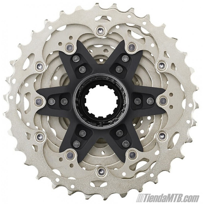 Cassette Shimano CS-R8100 de 12 velocidades para bici de carretera (grupo Ultegra). Casete duradero, fiable y ligero, con araña de aluminio en las coronas más grandes, y resto de coronas aligeradas al máximo. Disponible en 11-34.