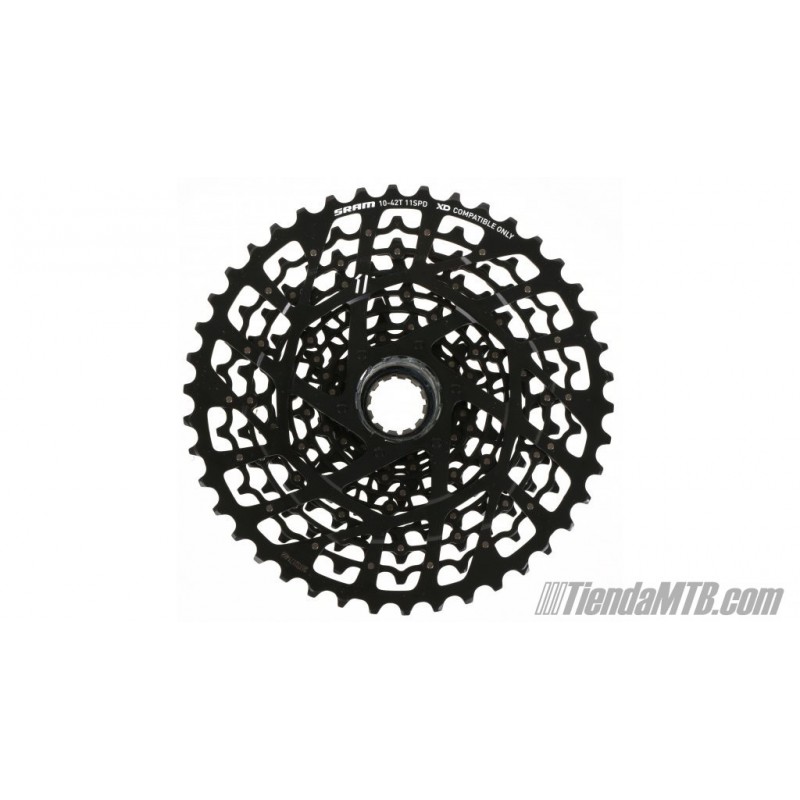 El cassette SRAM GX de 11 velocidades (10-42) XG-1150 proporciona cambios como los de sus hermanos mayores pero a un precio más barato. El cassette SRAM 10-42 es solo para bujes con núcleo XD. El piñón de 10 dientes amplia el rango para tener buen desarrollo en cualquier terreno. Peso: 394gr.