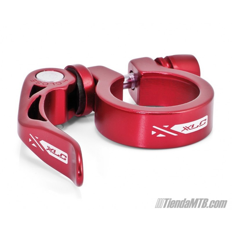 Cierre XLC para tija de sillín. Abrazadera de aluminio, con cierre rápido. Color rojo.