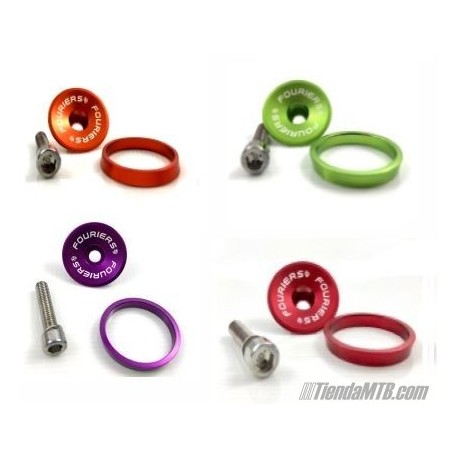 Tapa de dirección Fouriers DX002 para direcciones ahead con medida de la parte de arriba de 1 1/8". Tapa y espaciador en aluminio anodizado en diversos colores: Violeta, Verde, Naranja, Rojo. Muy ligera. Precio por unidad.