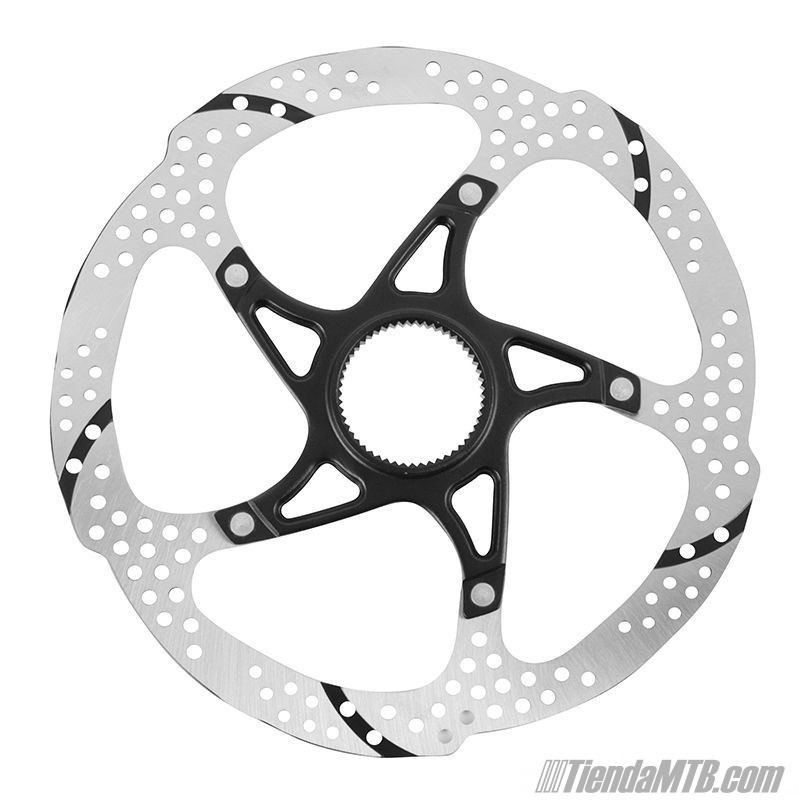 Disco de freno TRP para ebikes y bicis de montaña. Anclaje tipo centerlock. Construido en acero con muchos orificios y araña de aluminio para disipar mejor el calor y un menor peso. Diámetro de 180mm.