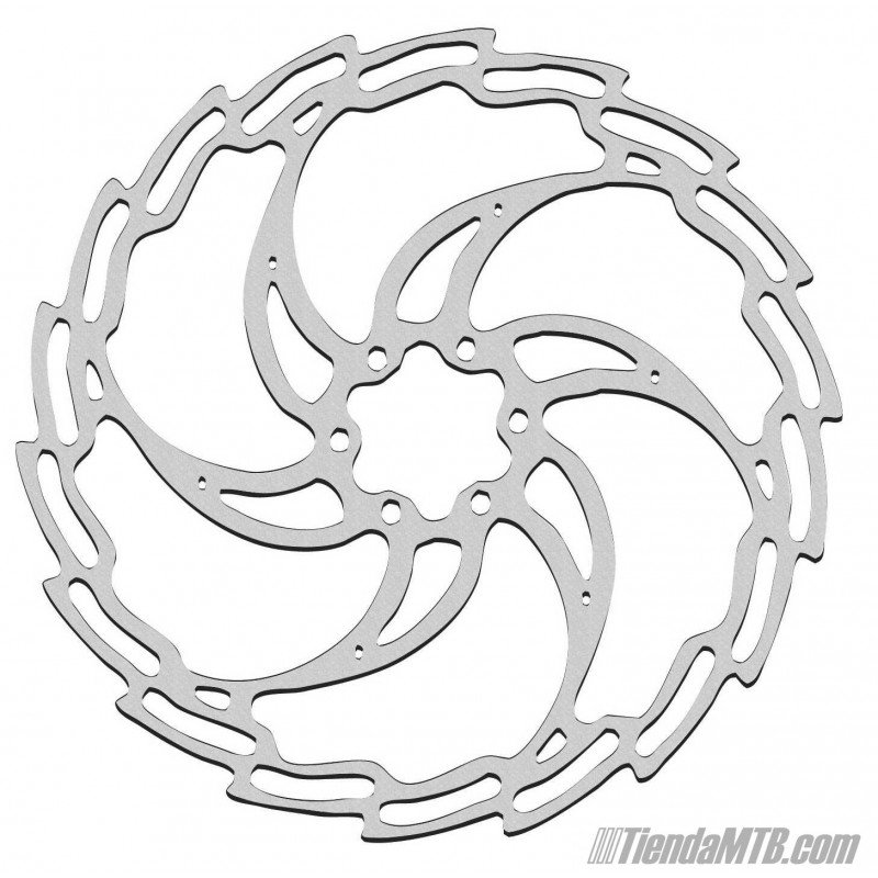 Disco de freno para bicis con frenos de disco. Anclaje de 6 tornillos. Construido en acero de máxima calidad con grandes orificios para disipar mejor el calor. Diámetro de 160, 180 o 203 mm. Color plata entero, o plata con el centro rojo.