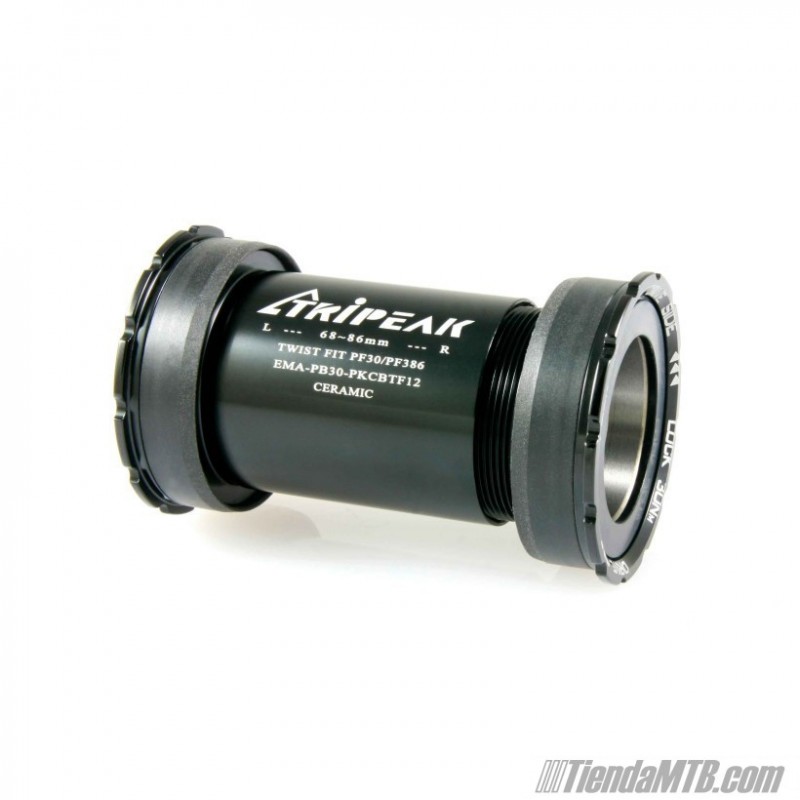 Juego de cazoletas cerámicas Tripeak para cajas de pedalier Pressfit30 (PF30), para montar bielas BB30. Si tu cuadro tiene la caja de pedalier PF30 (46mm) ya puedes poner unas bielas con eje BB30 (30mm). Rodamientos cerámicos para obtener el máximo rendimiento. Sistema de instalación TwistFit fácil y seguro (herramienta incluida).