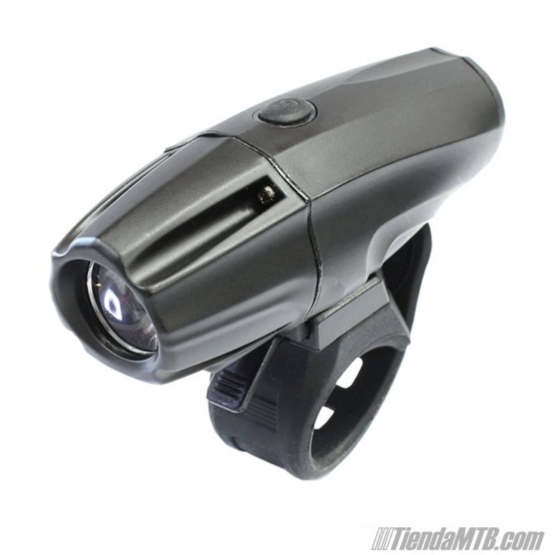 Foco de alta potencia (1000 lumens) para circular con total normalidad por caminos en buen estado o carreteras en noche cerrada. Se carga por USB con cualquier cargador microUSB. Incluye el cable USB y el soporte para manillar. 3 niveles de intensidad de luz y modo fijo o parpadeante.