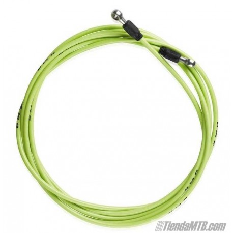 Conducto para frenos de disco hidráulicos reforzado con Kevlar. Estos latiguillos ofrecen la máxima resistencia a la expansión, para tener una frenada más potente con menos esfuerzo. Se incluye latiguillo acabado con banjos y juntas de goma. Para algunas marcas necesitará comprar el pin específico (ver descripción). 3 metros, suficiente para ambos frenos. Color verde.