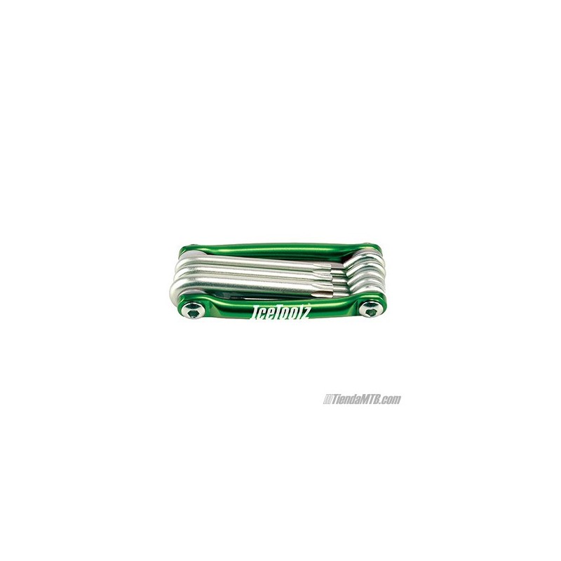 Juego de llaves Torx con las medidas más comunes en bicicletas: T9/T10/T15/T20/T25/T27/T30/T40. Este juego de llaves de estrella Torx han sido realizadas en acero de alta dureza.