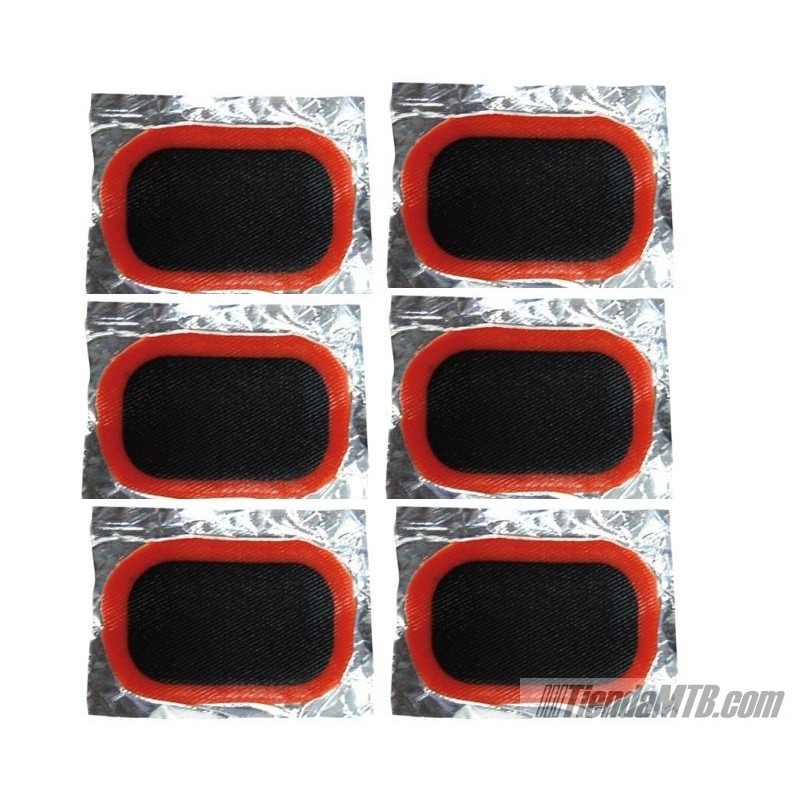 6 parches grandes rectangulares para usar con pegamento para reparar cámaras de bicicleta y otros productos inflables. Parches de 32x50mm de tamaño, suficiente para arreglar casi cualquier pinchazo y raja. No se incluye pegamento ni ningún otro accesorio.