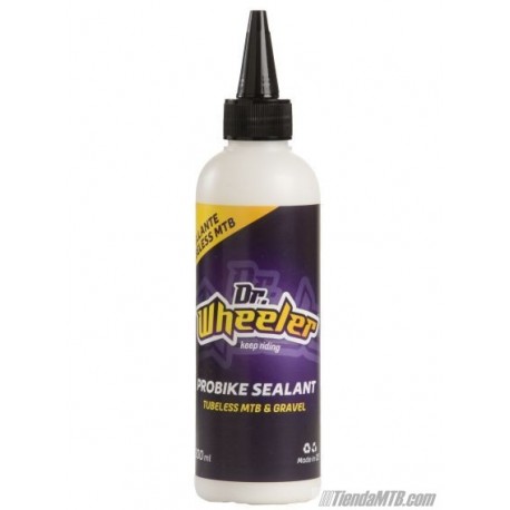 DrWheeler es una marca española de reconocido prestigio en la fabricación de líquidos antipinchazos y otros productos para la bici. Con un bote de líquido sellante de 200ml podrás sellar 2 ruedas de MTB, o 5-7 con el de 500ml.