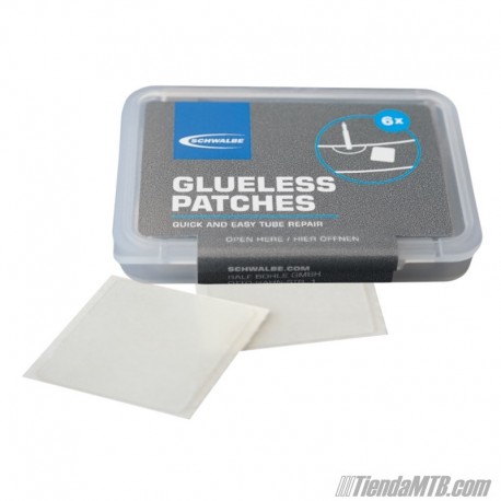 Caja de 6 parches para cámaras de TPU ultraligeras. Incluye 6 parches autoadhesivos (no necesitan pegamento). Siempre que salga a montar lleve una caja de parches para arreglar un pinchazo inoportuno.