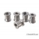Tornillos para platos en aluminio 7075 anodizado en diversos colores. Formato largo, la parte estrecha de la tuerca tiene 6mm, ideal para sujetar dos platos, un monoplato y un protector externo, o un monoplato grueso o la araña gruesa. Se incluyen 5 tornillos. Color plateado.