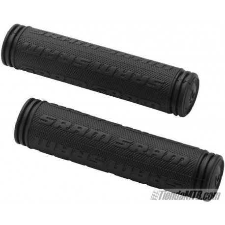 Puños SRAM para manillar de bicicleta. Los puños está fabricados con goma blanda para un buen agarre, y con un buen espesor para aportar amortiguación. Puños de color negro, y longitud de 130mm. Estos puños SRAM van cerrados por el extremo pero se puede cortar para poner tapones normales.