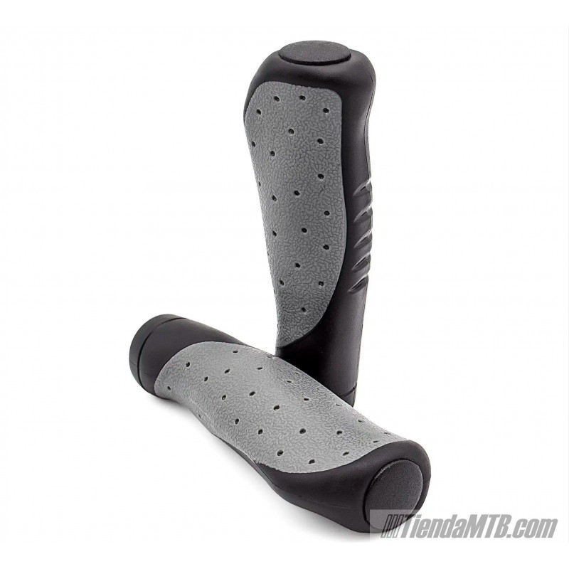 Estos puños ergonómicos están realizados con un doble compuesto de goma, ofreciendo comodidad, amortiguación, un buen agarre y resistencia al tiempo. La parte más ancha permite descargar la presión sobre un area mayor de la mano, evitando así dolores en las manos.