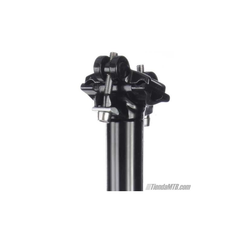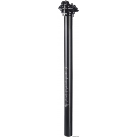 La tija de sillín BrandX está hecha en aluminio. Ajuste fino del ángulo del sillín gracias a los dos tornillos de ajuste. La tija tiene marcas de posición y la cabeza es recta (sin retroceso). Longitud de 400mm. Peso: 350gr. Color negro.