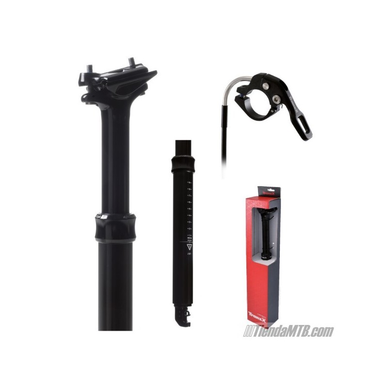 La tija telescópica Tranz-X es una tija ajustable en altura para bicicletas de montaña y gravel. Permite subir o bajar el sillín en marcha para afrontar un descenso complicado pudiendo dejarlo en cualquier punto intermedio (ajuste infinito).